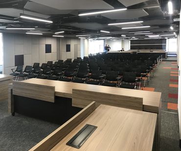 Salas de Audiencia (2) - Sala Polivalente - Atención a Victimas - Salas de Versiones Libres - Salas de Comparecientes - Salas Espejo - Salas de Juntas - CER - Oficinas de Transcripción y Edición - Dependencias Administrativas, Oficina Abierta - Zona de Conductores y Archivo.